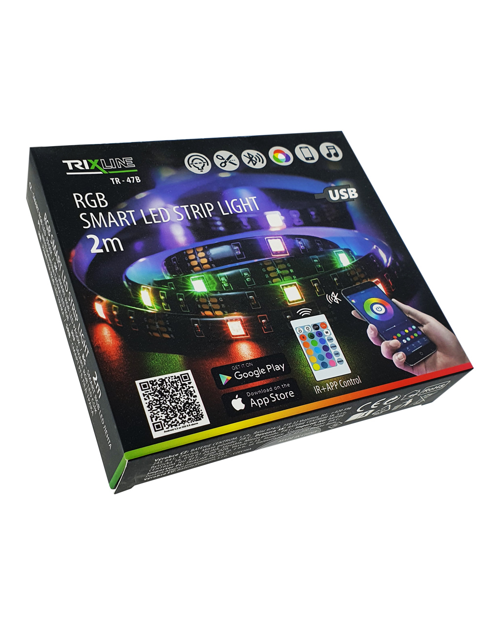 RGB LED pásek TR-47B Trixline s chytrou aplikací do telefonu, dálkovým ovládáním a časovačem. Vytváří jedinečnou atmosféru interiéru ložnice, obývacího pokoje, jídelny, kuchyně, pracovny, dětského pokoje, chodby atd. Je energeticky úsporný, opatřen oboustrannou samolepící páskou pro snadnou instalaci. Vhodný k efektivnímu podsvícení televizoru, monitoru, polic, skříní, uměleckých děl, pohovky, postele, pracovního stolu apod.