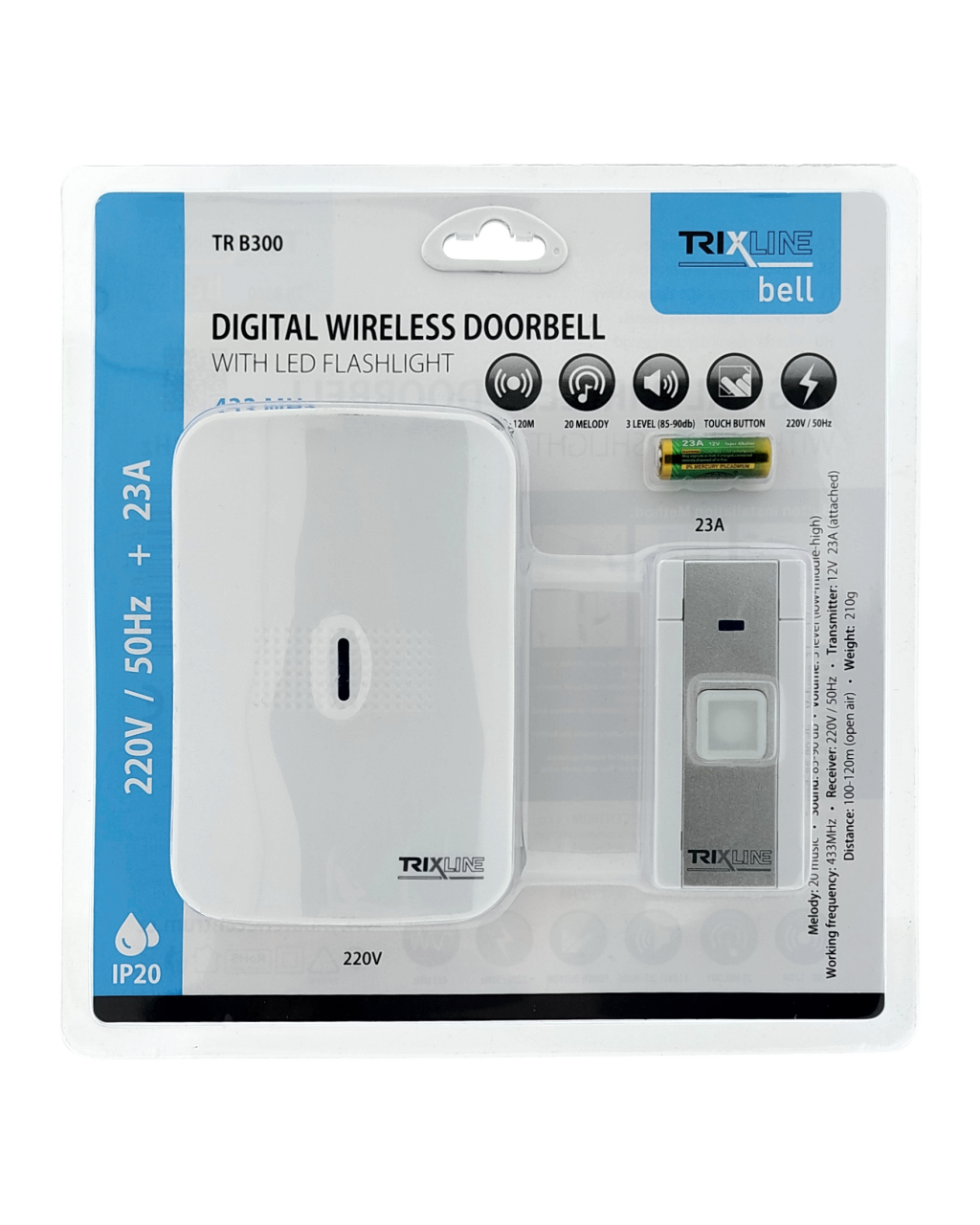 Bezdrátový zvonek Trixline BELL je skvělé řešení všude tam, kde není možné nainstalovat klasické drátové připojení. Mezi hlavní přednosti patří velmi snadná montáž, provoz tlačítka na baterie.