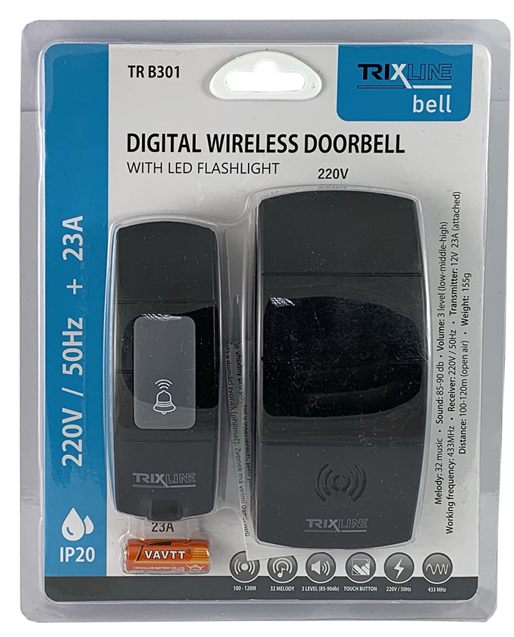 Bezdrátový zvonek Trixline BELL je skvělé řešení všude tam, kde není možné nainstalovat klasické drátové připojení. Mezi hlavní přednosti patří velmi snadná montáž, provoz tlačítka na baterie.