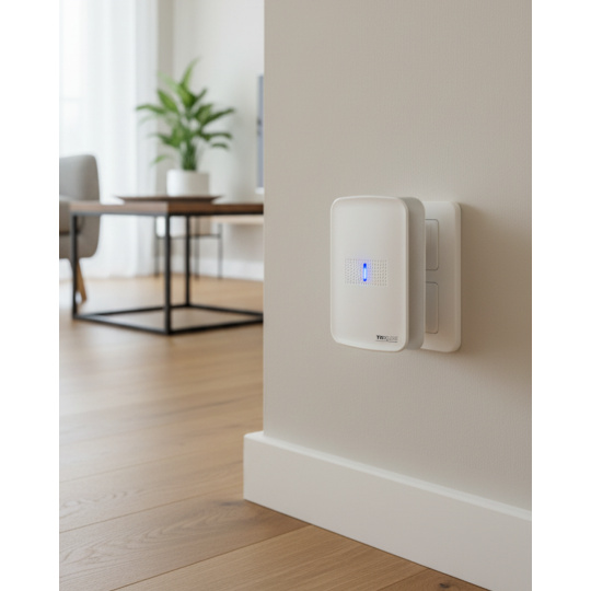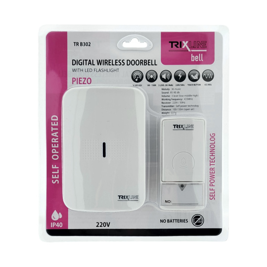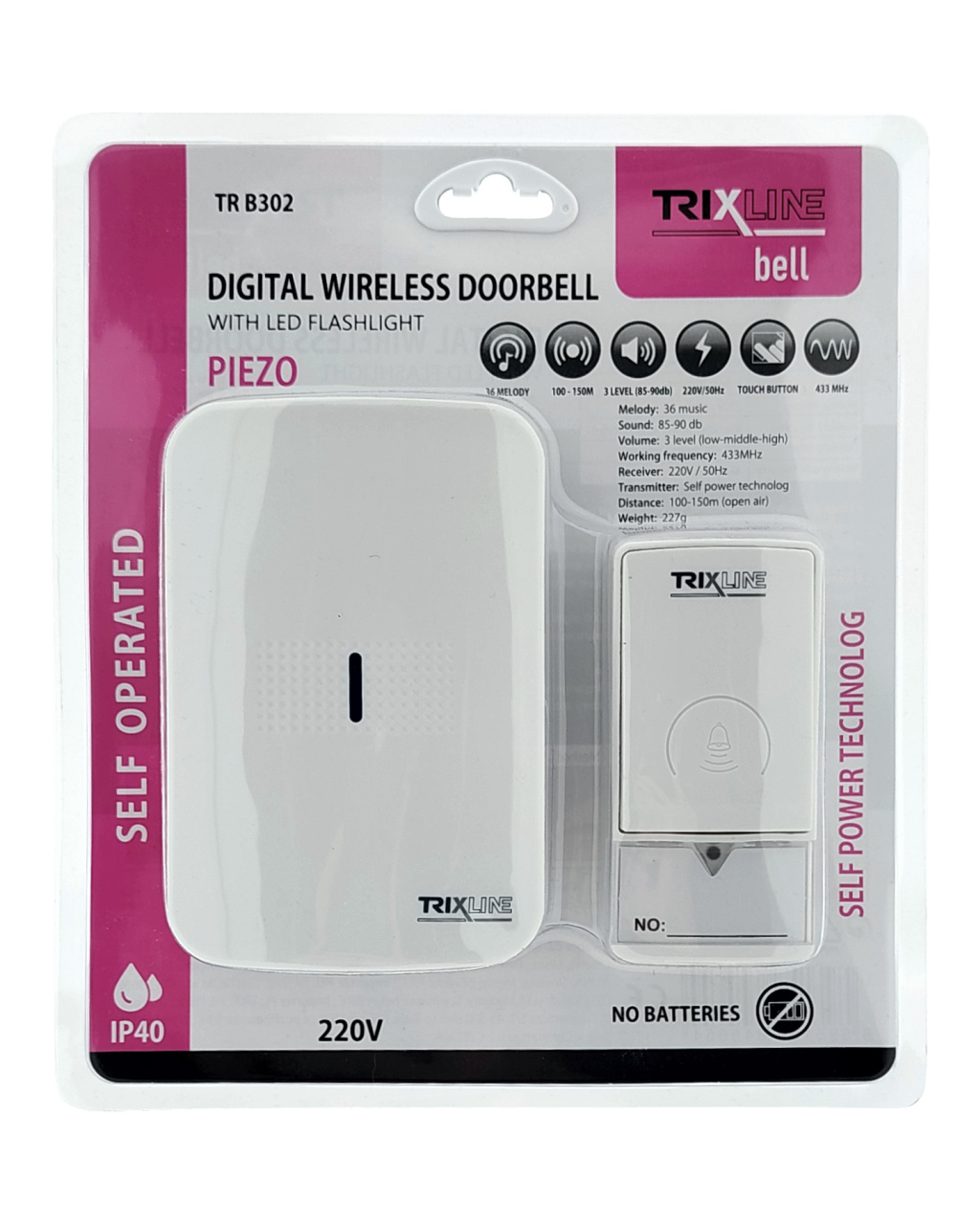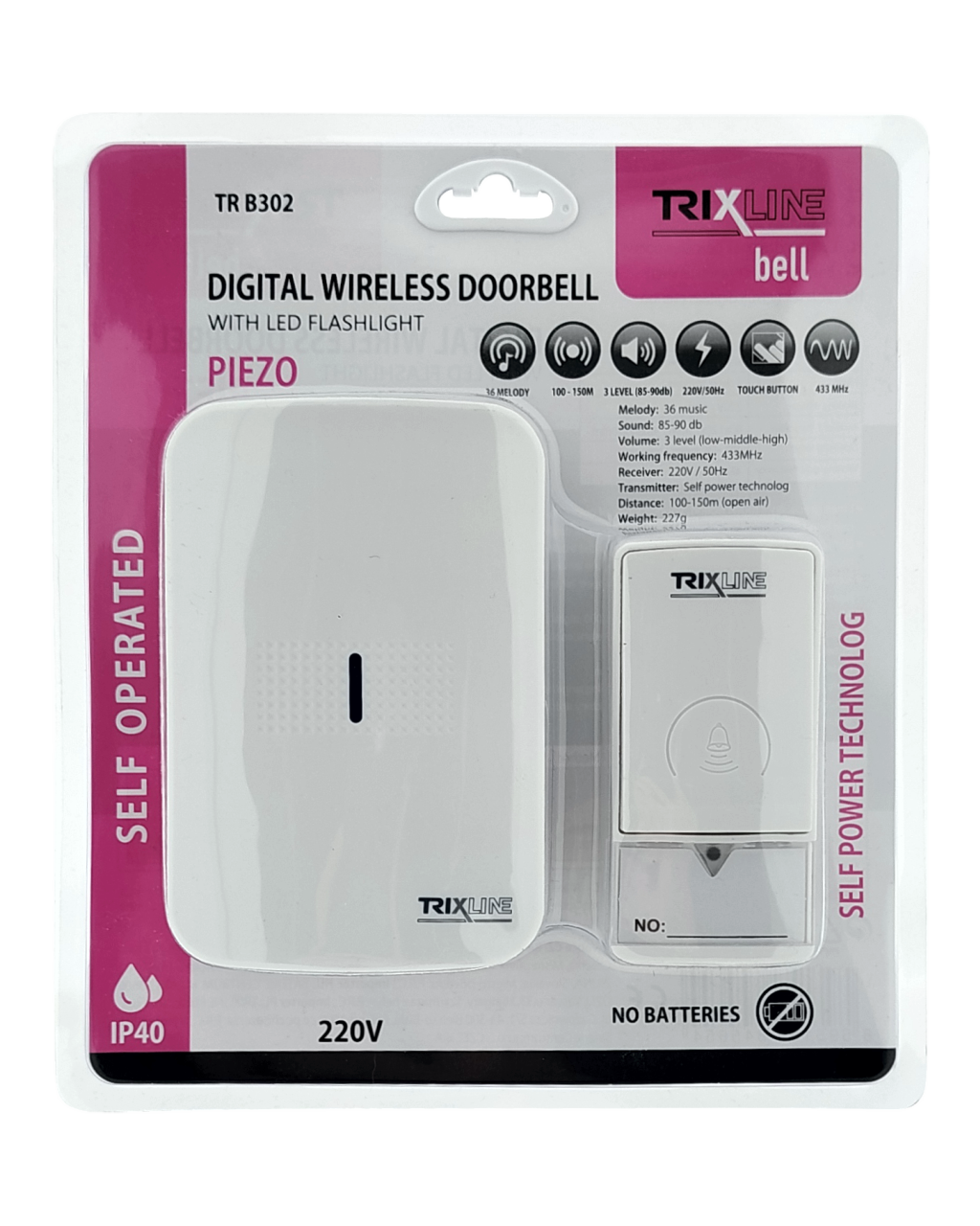 Bezdrátový zvonek Trixline BELL je skvělé řešení všude tam, kde není možné nainstalovat klasické drátové připojení. Mezi hlavní přednosti patří velmi snadná montáž, bezbateriový provoz PIEZO tlačítka.