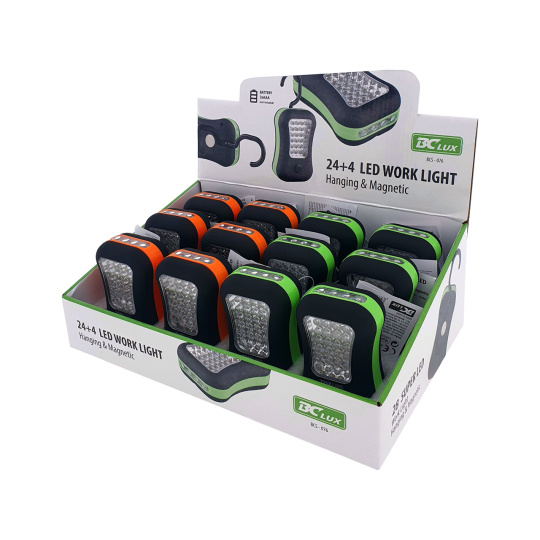 Univerzální LED svítilna disponuje protiskluzovou povrchovou úpravou ABS, je odolná vůči vnějšímu poškození. Na zadní straně doplněna magnetem a otočným, výklopným háčkem na zavěšení.