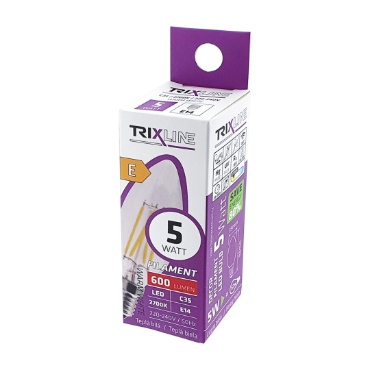 Dekorační LED žárovka FILAMENT Trixline 5W 600lm C35 E14 teplá bílá