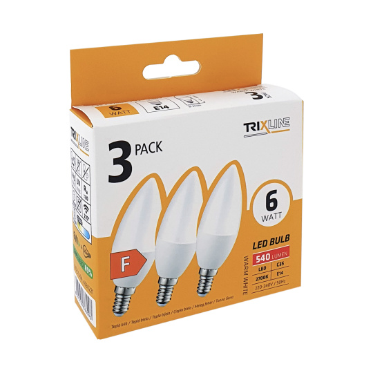 LED žárovka Trixline 6W C35 E14 teplá bílá 3 PACK